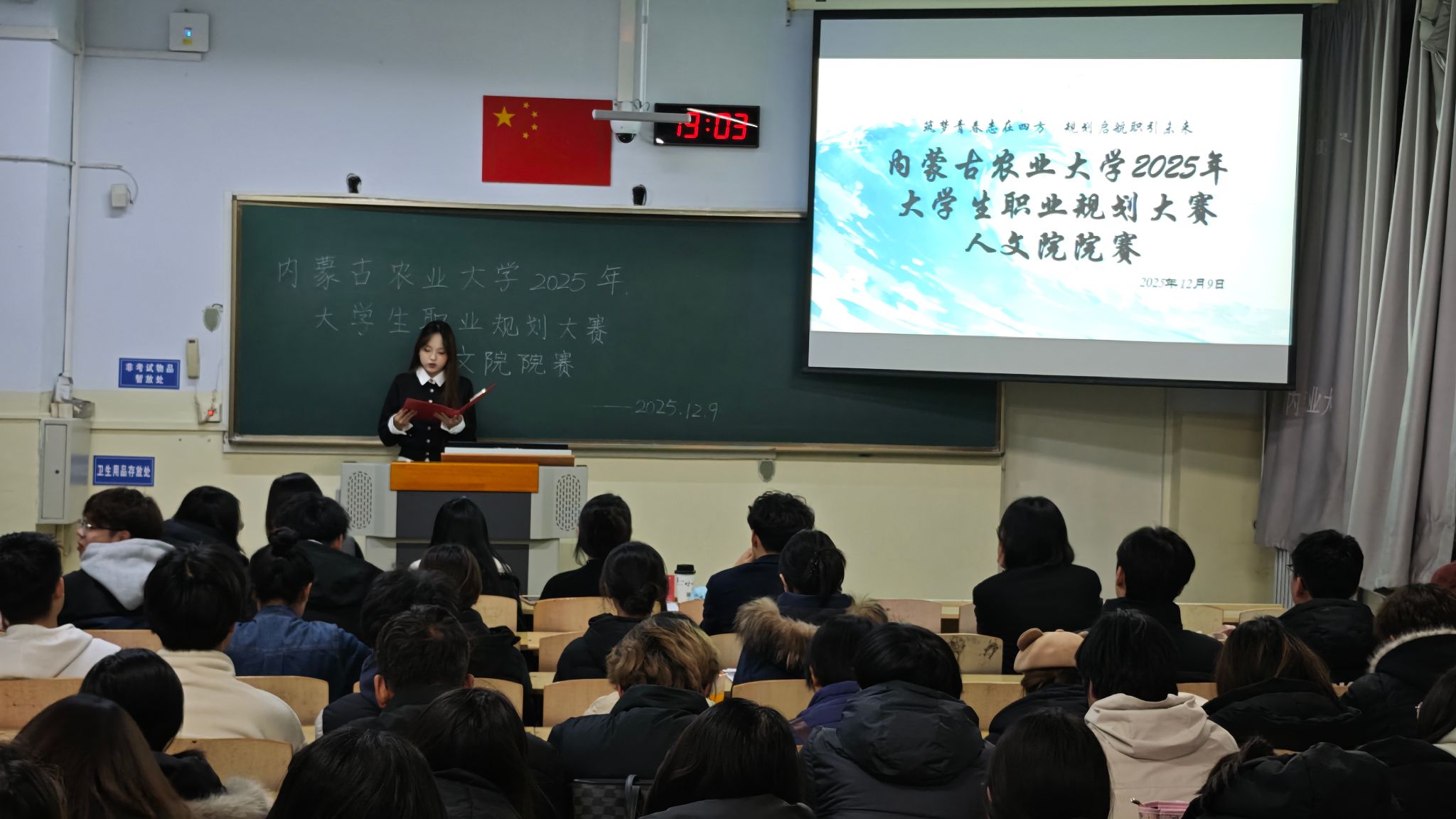 为了帮助学生明确职业目标、规划成长路径,我院于12月9日在东校区主教学楼102教室成功举办内蒙古农业大学2025年大学生职业生涯规划大赛人文院院赛。本次比赛既是学子梳理职业方向的“成长舞台”,也是冲刺自治区第五届大学生职业规划大赛的“校赛初选站”,吸引了不同年级学生参与成长、就业两大赛道的角逐。