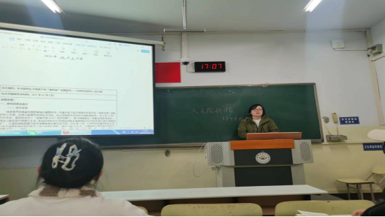 为促进不同年级研究生学术交流探讨,助力解决在论文选题与写作过程中遇到的实际问题,人文社会科学学院于11月20日在东主教学楼成功举办了“学术探讨,交流互鉴”的学术交流分享会,此次活动旨在通过跨年级的教育与师生之间的交流互动,提高研究生的选题能力与科研写作水平,研二研一学生参会,研二学生王艳梅、乌日汗、王轩宇就开题报告进行了分享,王利清老师莅临指导并给出针对性建议。