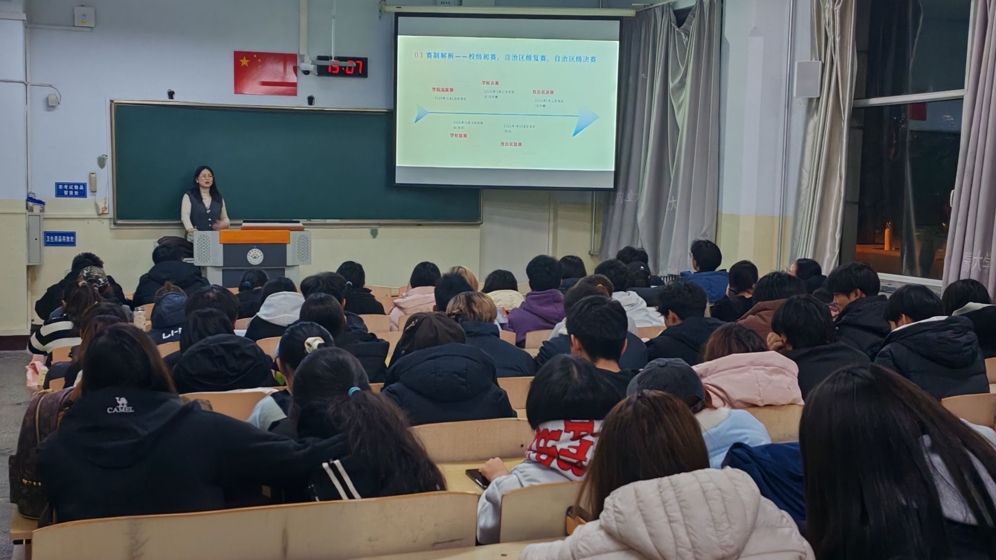 为助力学生积极备战“内蒙古自治区第五届大学生职业规划大赛”,制定科学合理的职业发展规划,提升就业竞争力,11月24日晚7:00,人文社会科学学院于东校区主教学楼102教室组织开展参赛指导专题讲座。本次讲座特邀内蒙古农业大学招生就业处创新创业教育中心主任杨慧老师担任主讲人,聚焦赛事核心流程与实操方法,围绕备赛关键要点系统授课,内容兼具指导性与实用性。学院各年级学生积极参与。
