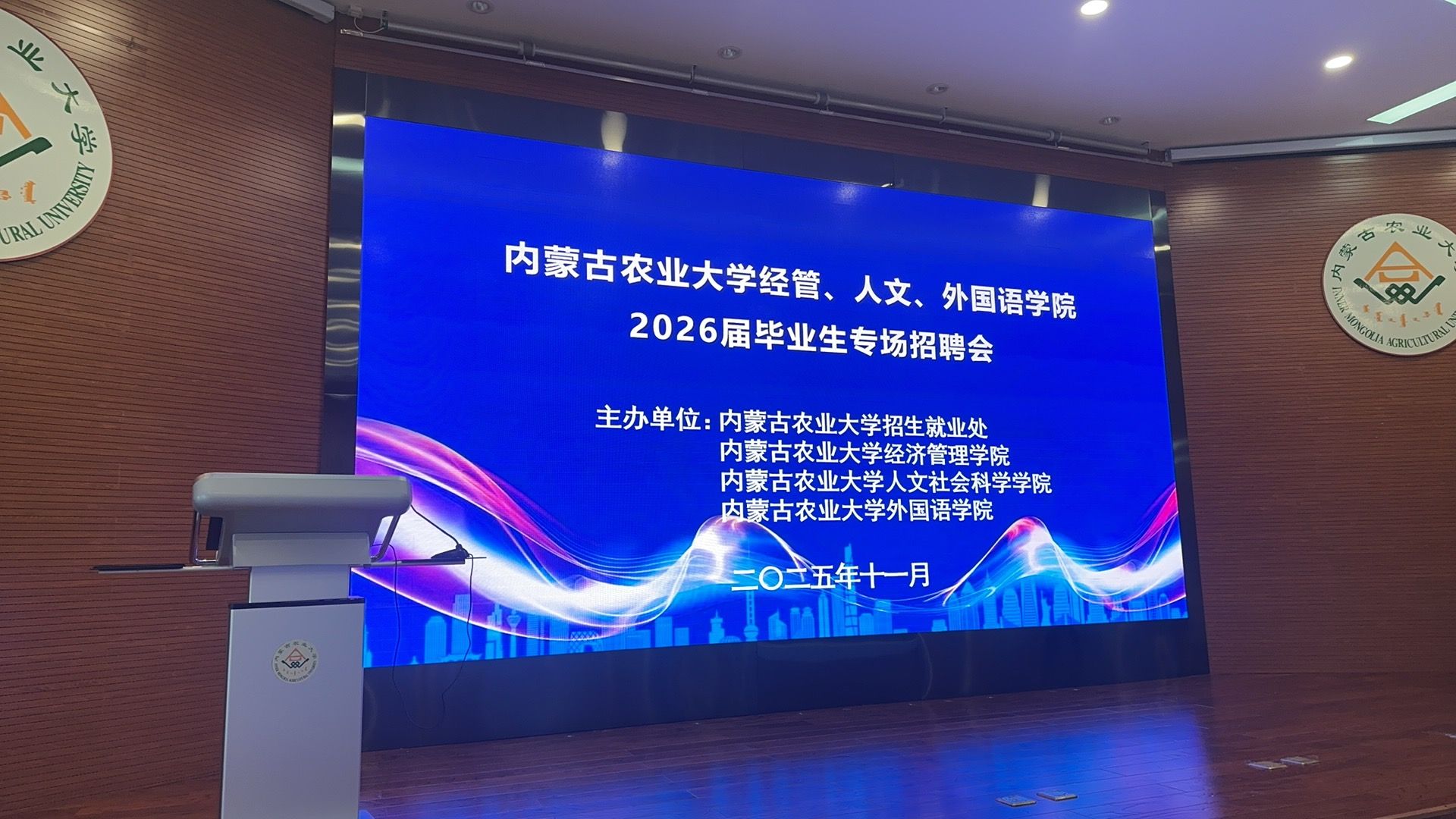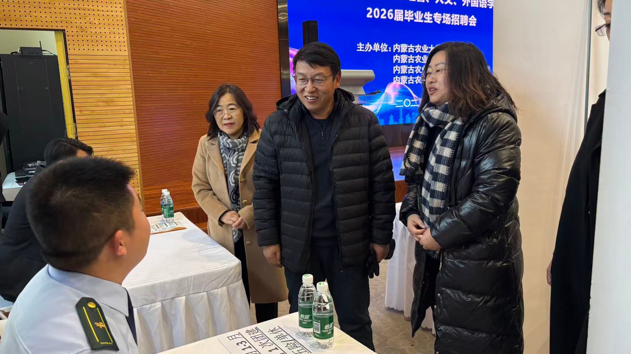 为搭建企业与高校毕业生的双向对接平台,实现人才供给和岗位需求的精准匹配,11月20日由内蒙古农业大学招生就业处、人文社会科学学院,经济管理学院、外国语学院联合举办的2026届毕业生专场招聘会于新校区经济管理学院一楼会议室隆重召开。我院党委书记李金华、党委副书记王丽、学院就业工作负责人陈玉双老师莅临现场。各学院毕业生积极前往应聘。